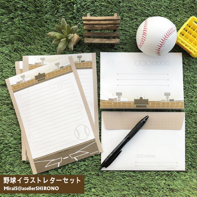 MiraiSアトリエしろのオリジナルの野球イラストレターセットです。