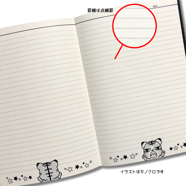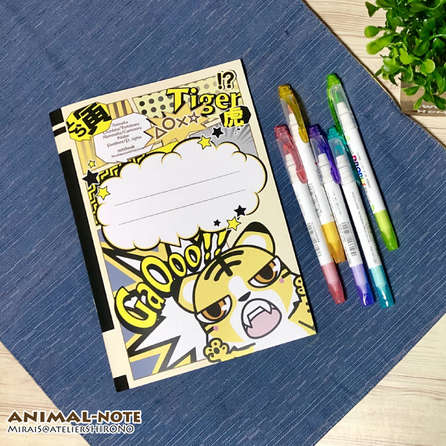 MiraiSアトリエしろのオリジナルA5サイズのあにまるトラのイラスト入りノートです。