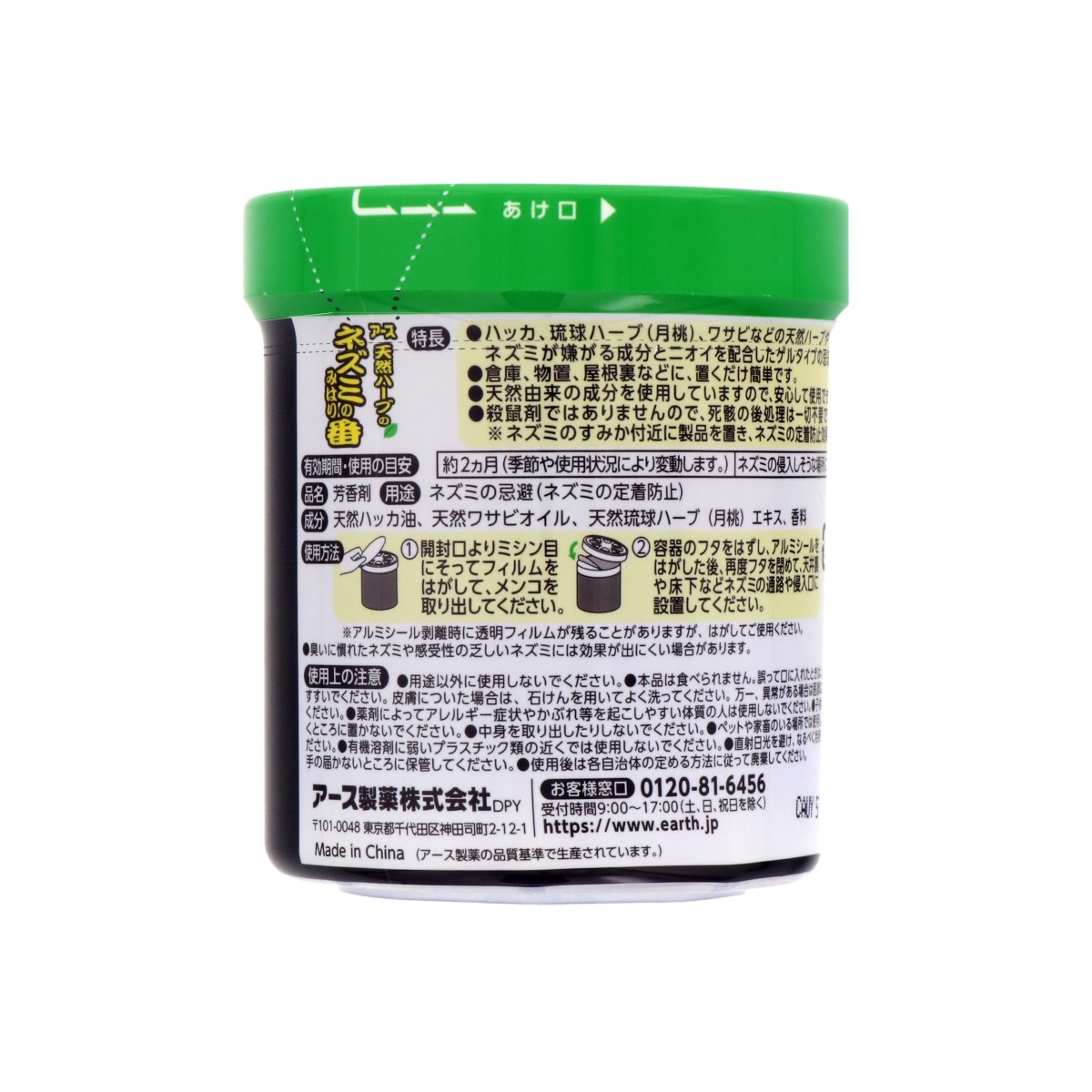 ・ハッカ・琉球ハーブ(月桃)・ワサビなどの天然ハーブやネコのニオイなど、ネズミが嫌がる成分とニオイを配合したゲルタイプの忌避剤なので安全です。