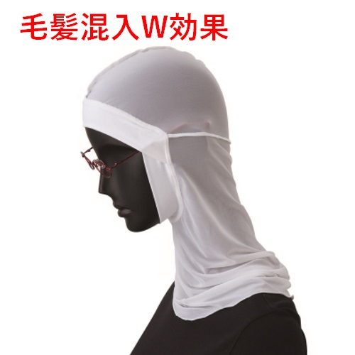 顔まわりのニット構造には、メガネのズレや異物混入を防止する特許技術が施されています。