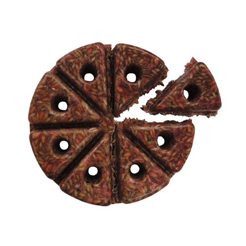 小麦粉、カナリヤシード、生の穀物粒に加えた上、ぎっしり外観からも見えている状態に仕上がっています。その他、砂糖やネズミが好むものを配合し、パラフィンで固めています。