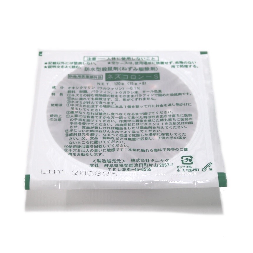 オキシクマリンを主剤にパラフィンで練り固めていますので、ネズミ以外の動物(人間、犬、猫、ニワトリなど)には食べにくい殺鼠剤です。