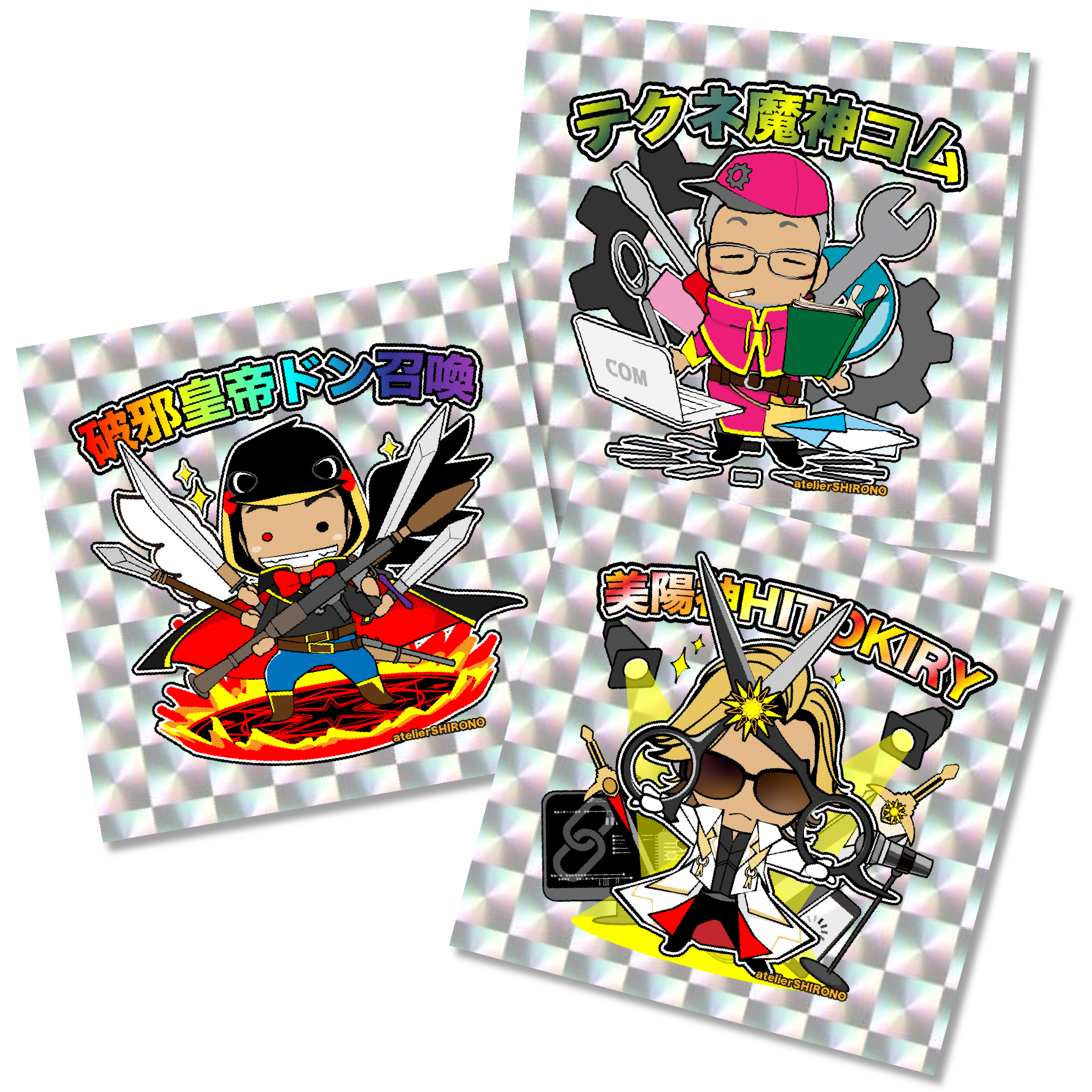 MiraiSアトリエしろのが描く似顔絵でビックリマンシールのようなキラキラシールを製作いたします。