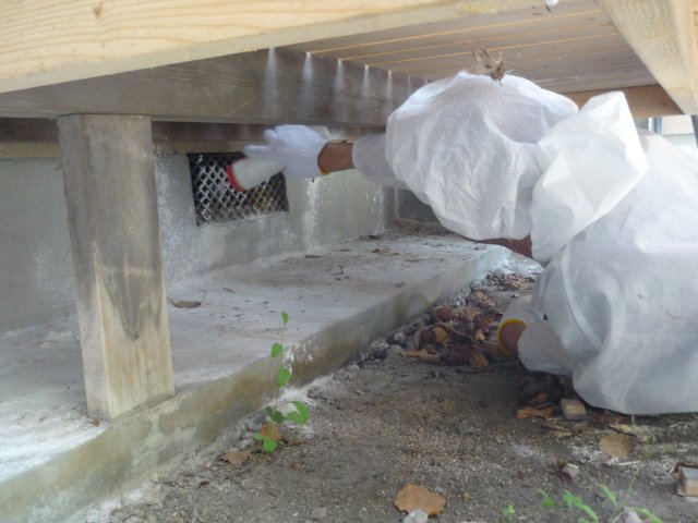 ※画像 床下換気口への侵入対策/大きな石の下
