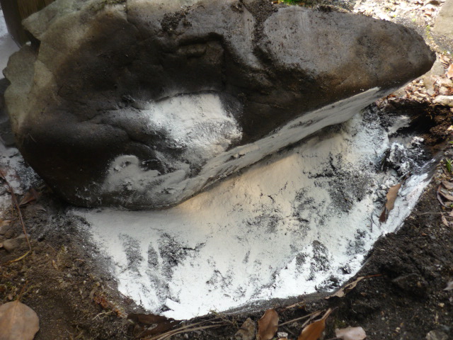 ・帯状散布の場合、家の周囲(犬走りの外側に沿って、5〜10cmの幅で散布します。
