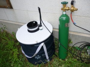 感染症媒介蚊を特殊な誘引剤で捕獲します。