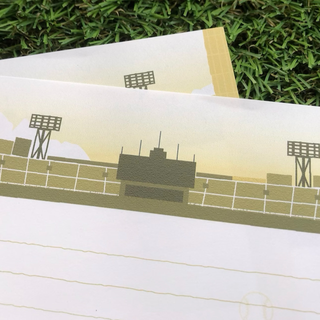 野球イラストの便箋 (マスタード色の球場) 便箋のみ