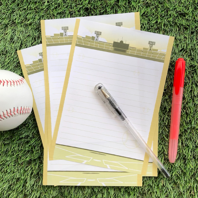 MiraiSアトリエしろのオリジナルの野球イラストの便箋です。※色違い便箋あります。