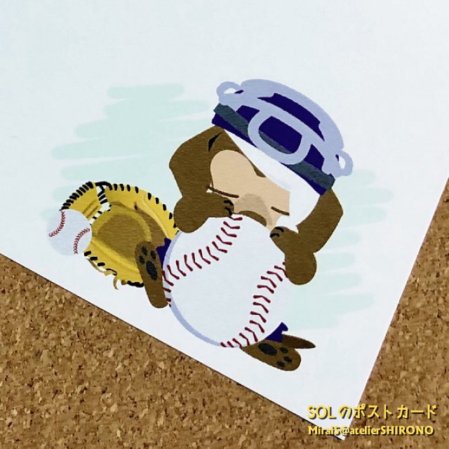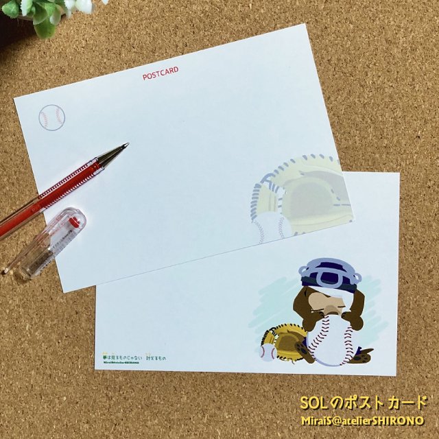 宛名面下部にはキャッチャーミットの透かしイラストを配置しています。