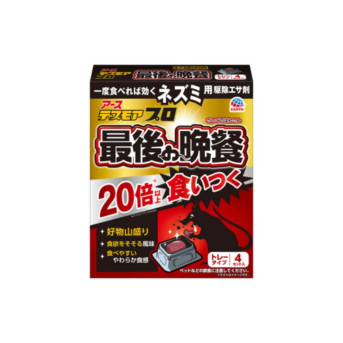 ・翌日から、駆除エサ剤の無くなった所は補充して数日間配置し、食べなくなるまで続けてください。(ネズミは隠れ場所へエサを持ち帰り、貯える習性〈貯食性〉があります。)