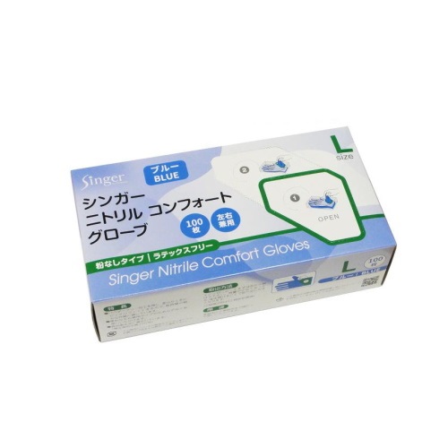 シンガーニトリルコンフォートグローブブルー100枚×30箱80㎛(3000枚/1函)