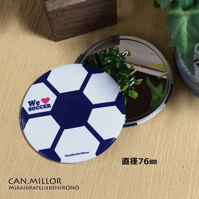 缶ミラーサッカーボール柄・専用ケース付