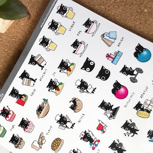 MiraiSアトリエしろのオリジナルの黒猫クロさんイラストシールです。