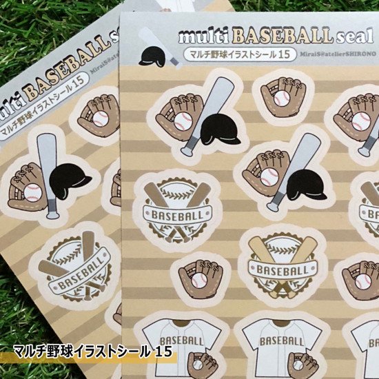 マルチ野球イラストシール15×2