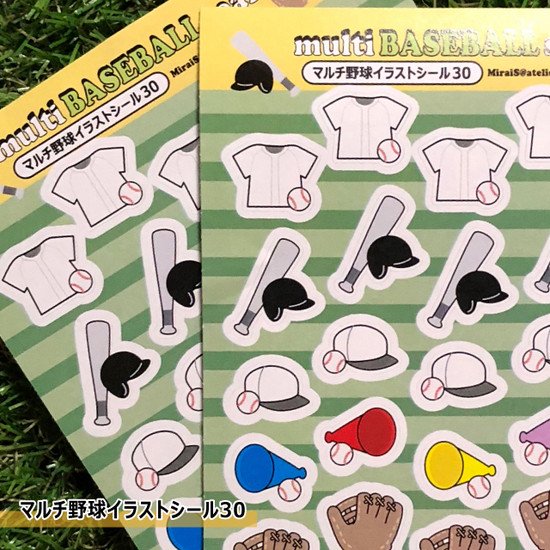 マルチ野球イラストシール30×2