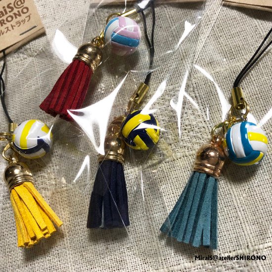 小ぶりの可愛いタッセル付きバレーボールストラップです。
