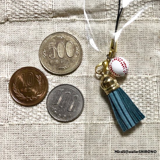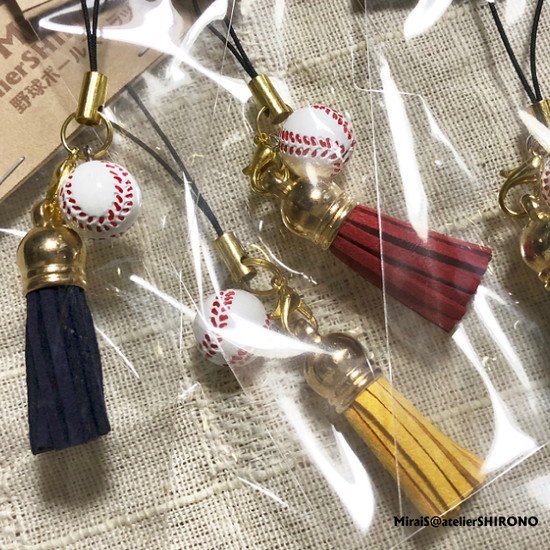 野球ボールストラップ(タッセル付き)