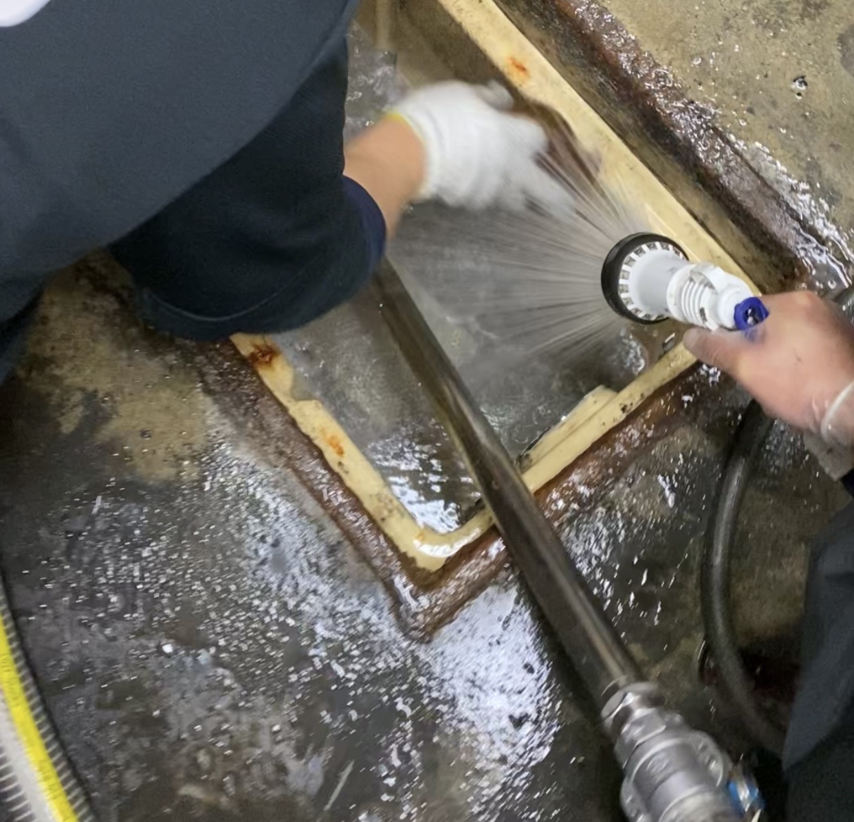 - 既に排水管に付着している油脂汚泥(スカム)を除去