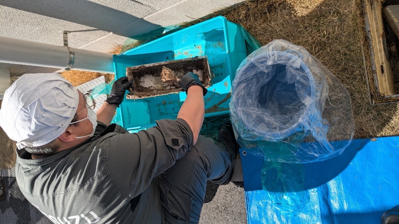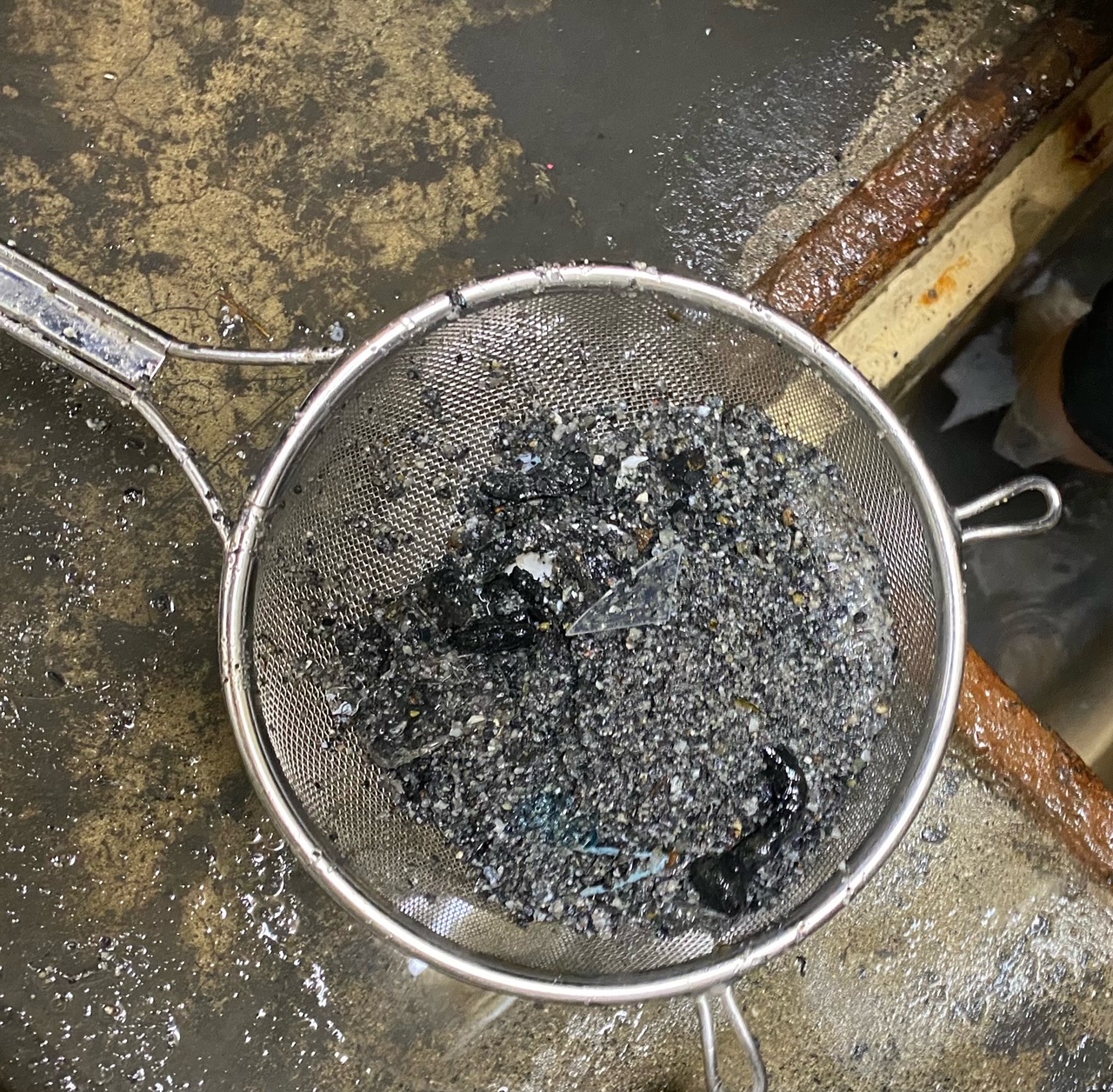 取り除いた少量のゴミについては、油分を除去した後の生ごみとして、水分を十分に切り、一般的な廃棄物として処理していただくよう、お客様に依頼します。