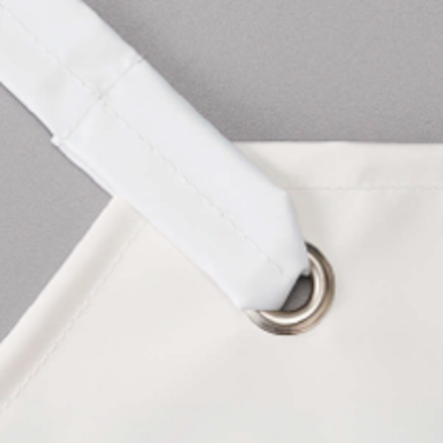 塩化ビニール製のエプロンです。厚みが0.4mmと他社同等品と比較して厚みがあり、丈夫で耐久性に優れます。ヒモは首掛けタイプになります。