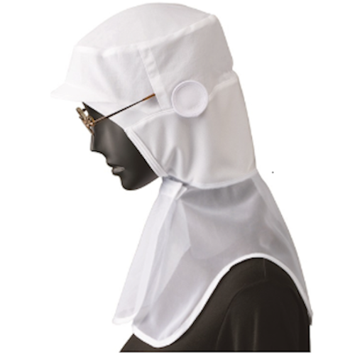 ツバ素材:織芯|額素材:テクノファイン|首素材:コンフォートセンサー|前部留め:スナップボタン|マスク掛け:円掛け式|メガネさし:スリット式|ケープ素材:メッシュ(立体ケープ)|後頭周り調整:ゴム入り