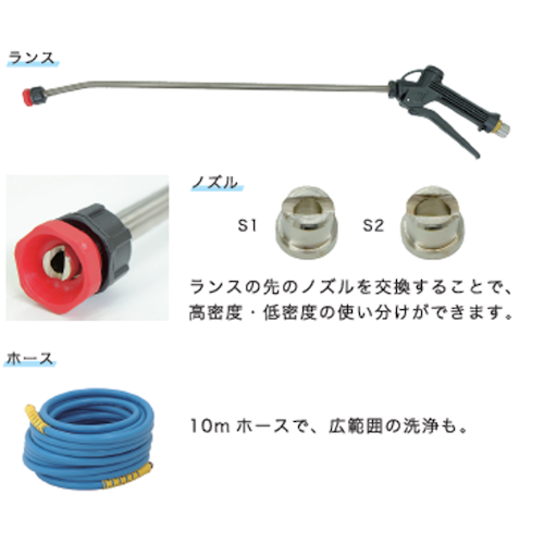 ホース10m×1、ランス×1、ノズル×1