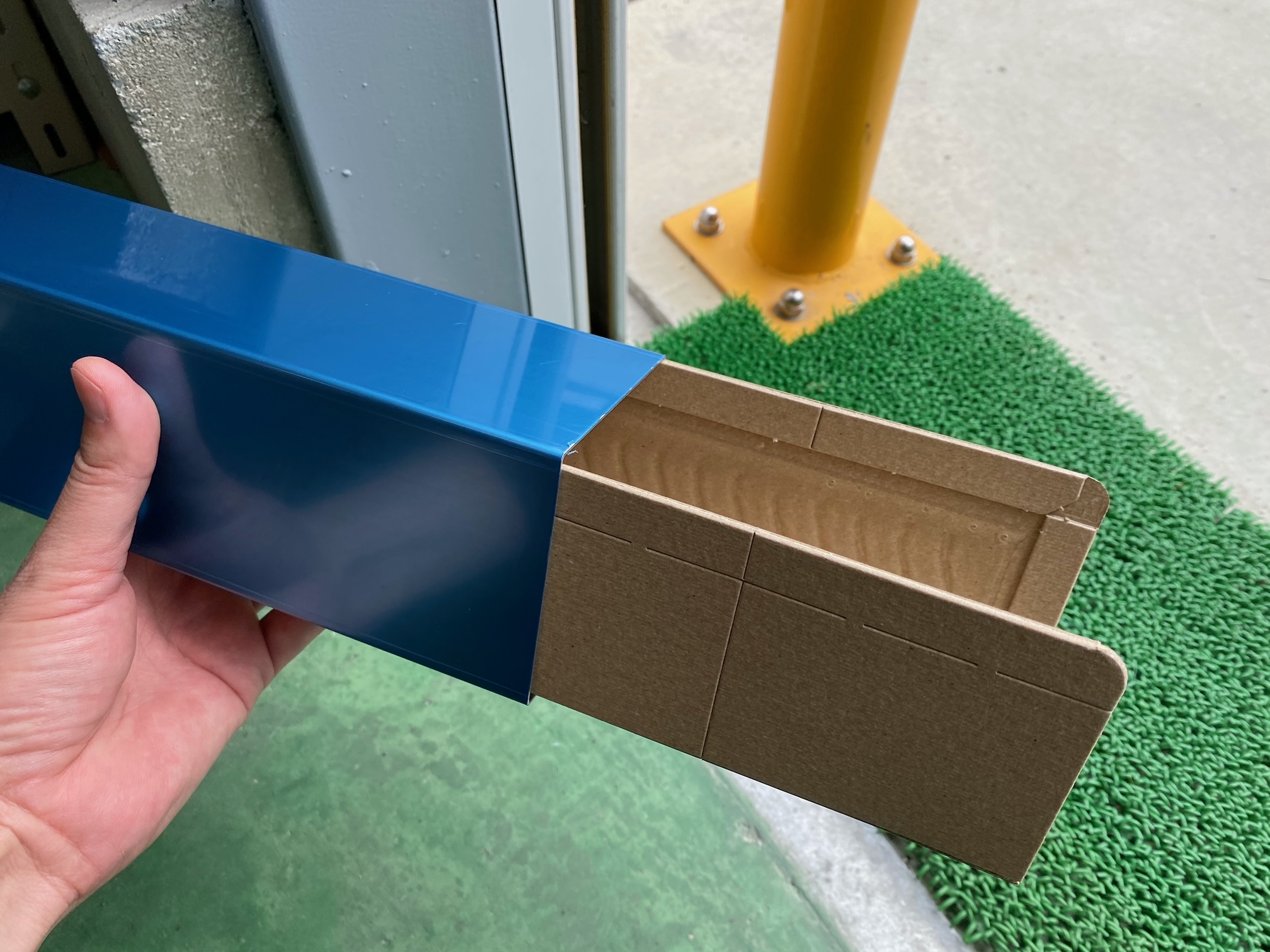 粘着マットを「コの字」に折って差し込んでお使いください。